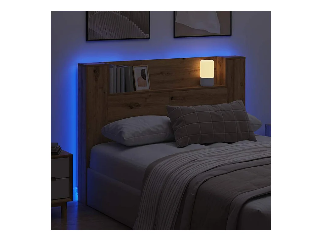Armoire tête de lit avec LED chêne artisanal 140x17x102 cm