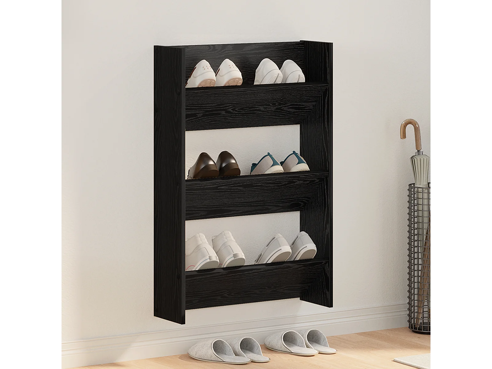 Armoires à chaussures murales 4 pcs Noir 60x18x60 cm Aggloméré