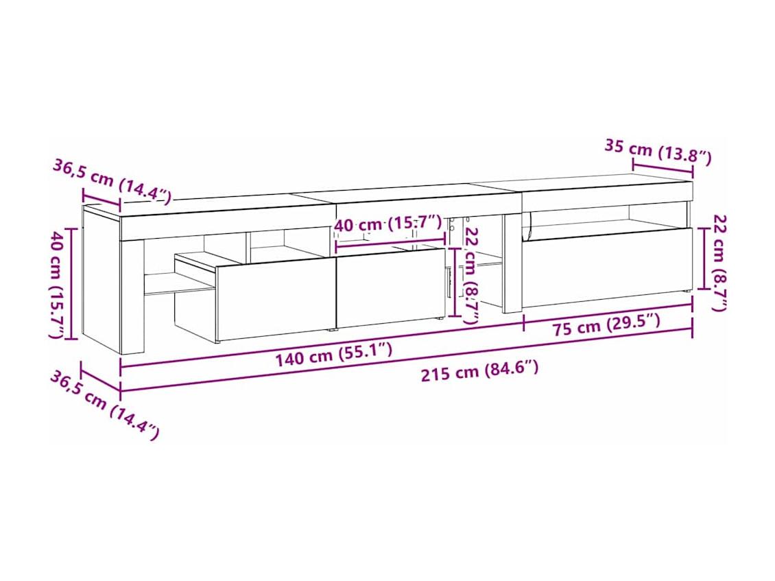 Cabinets TV 2 pcs avec lumières LED Chêne noir Bois d'ingénierie