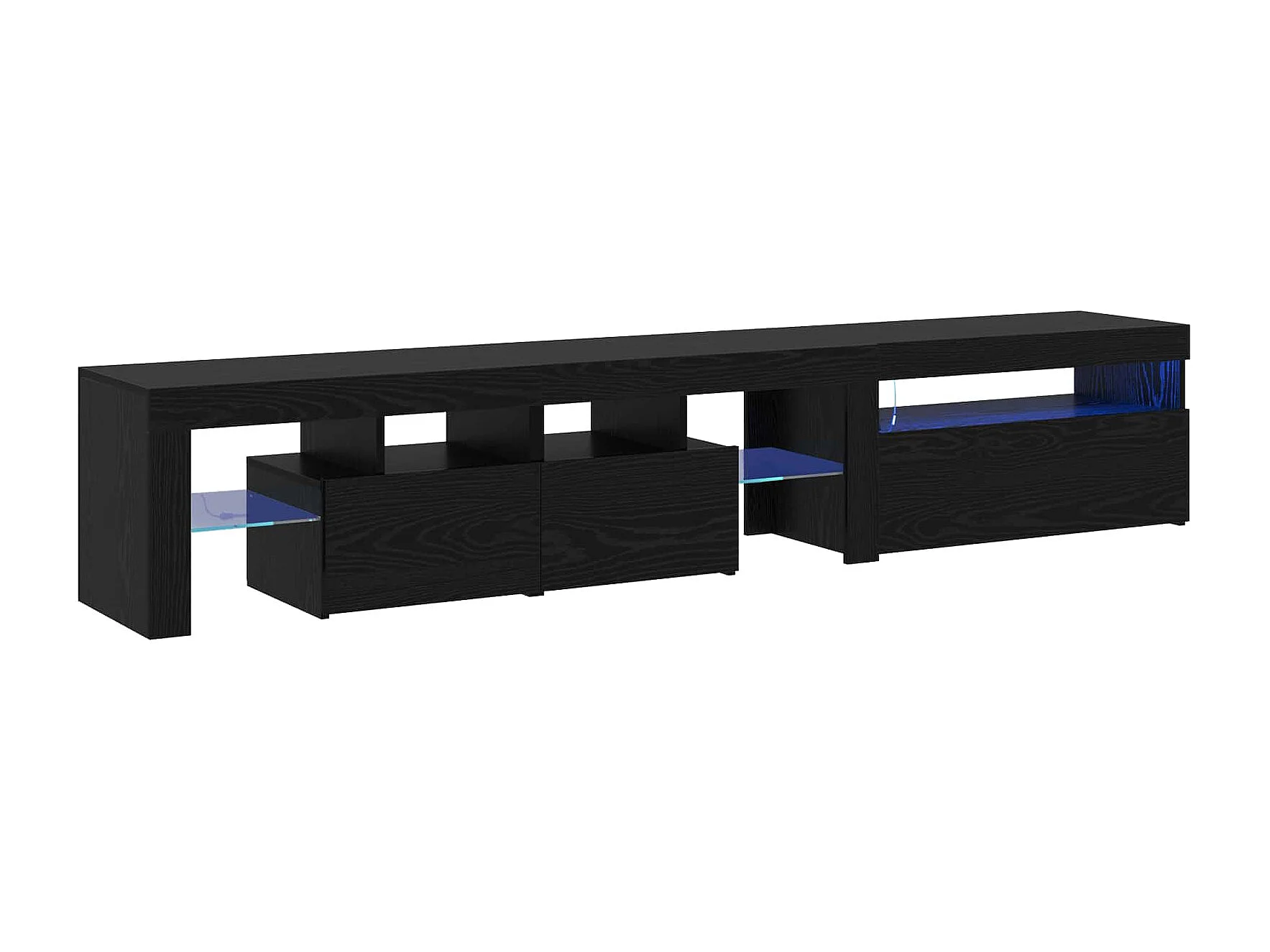 Ensemble de meubles pour salon 3 éléments avec LED – meuble TV 180 cm, vitrine et étagère, noir mat