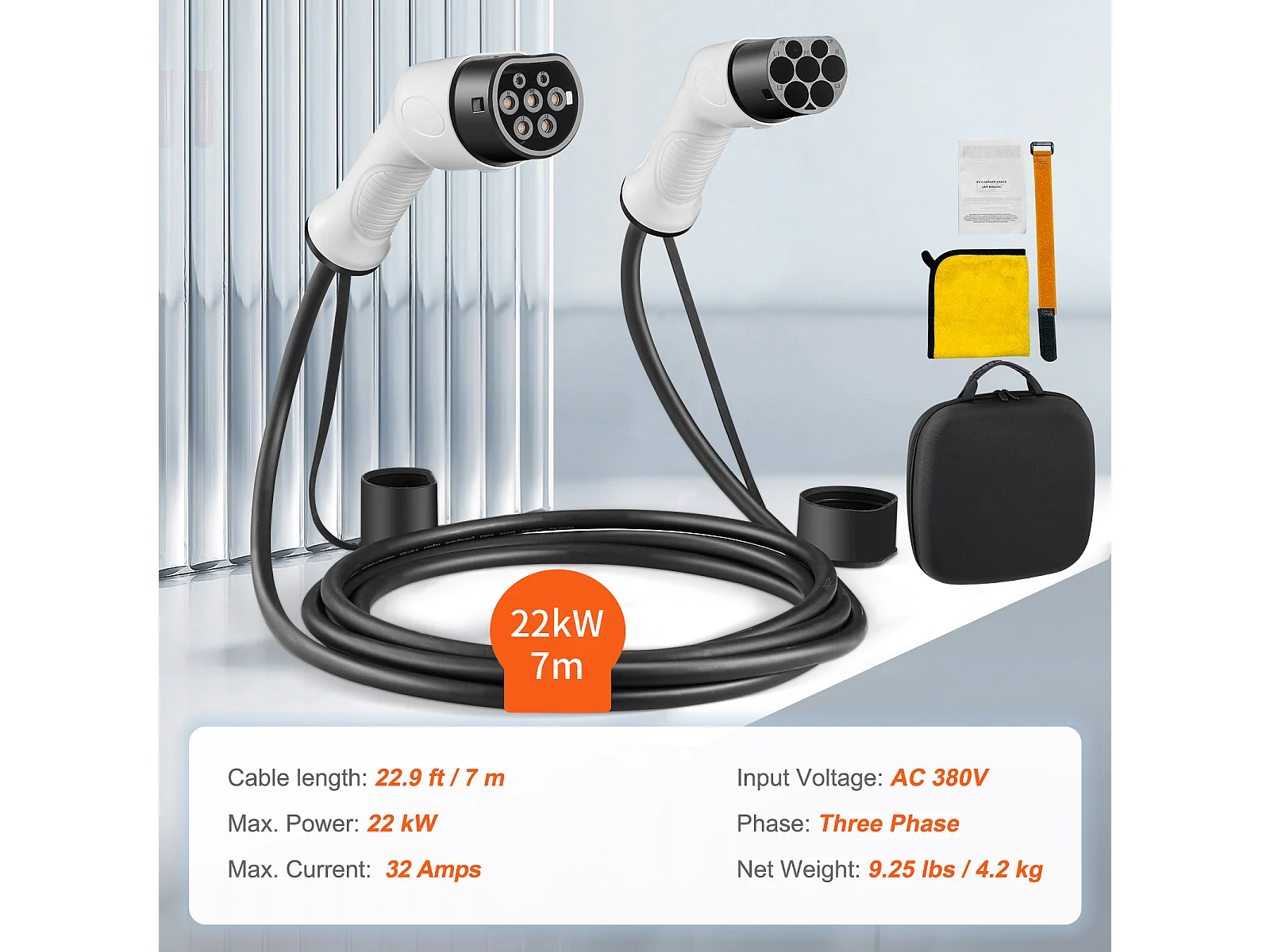 Câble de Charge, SucceBuy Câble de Charge Type 2 à Type 2 EV 32A 70CM 22KW TPU