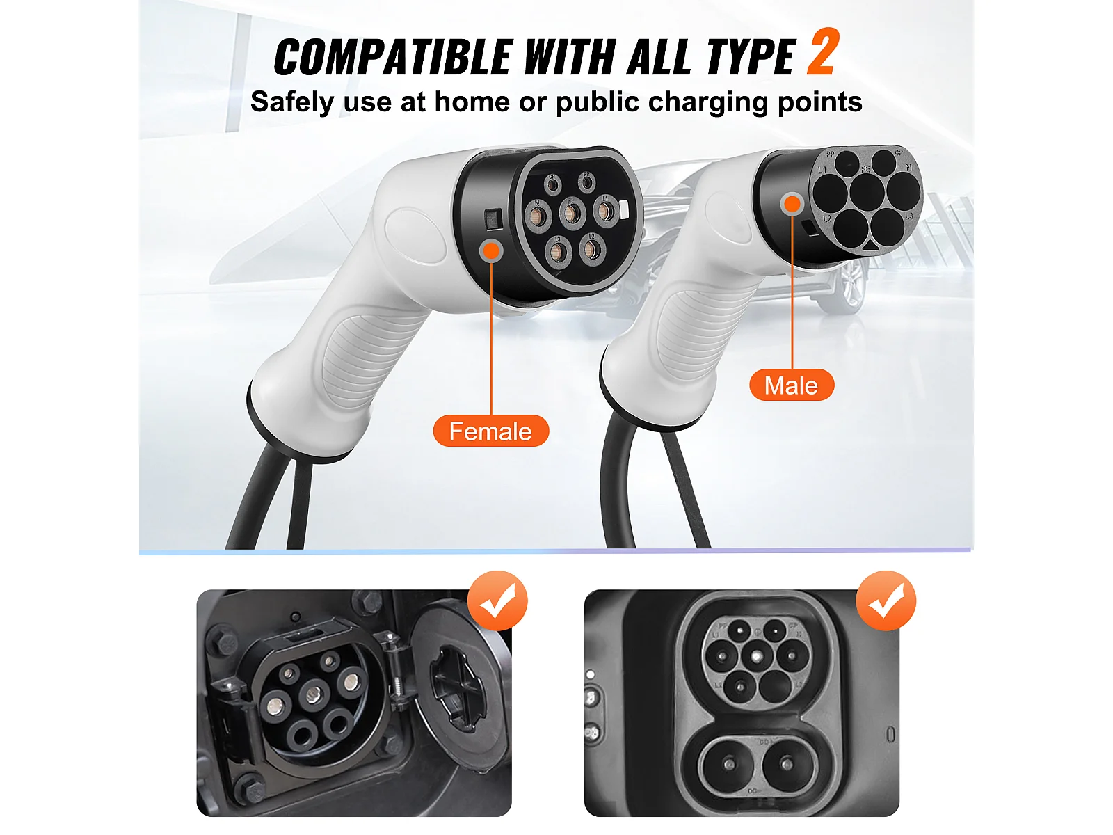 Câble de Charge, SucceBuy Câble de Charge Type 2 EV, 16 A, 50 CM, 3,6 KW, TPU, Câble pour Véhicule Électrique