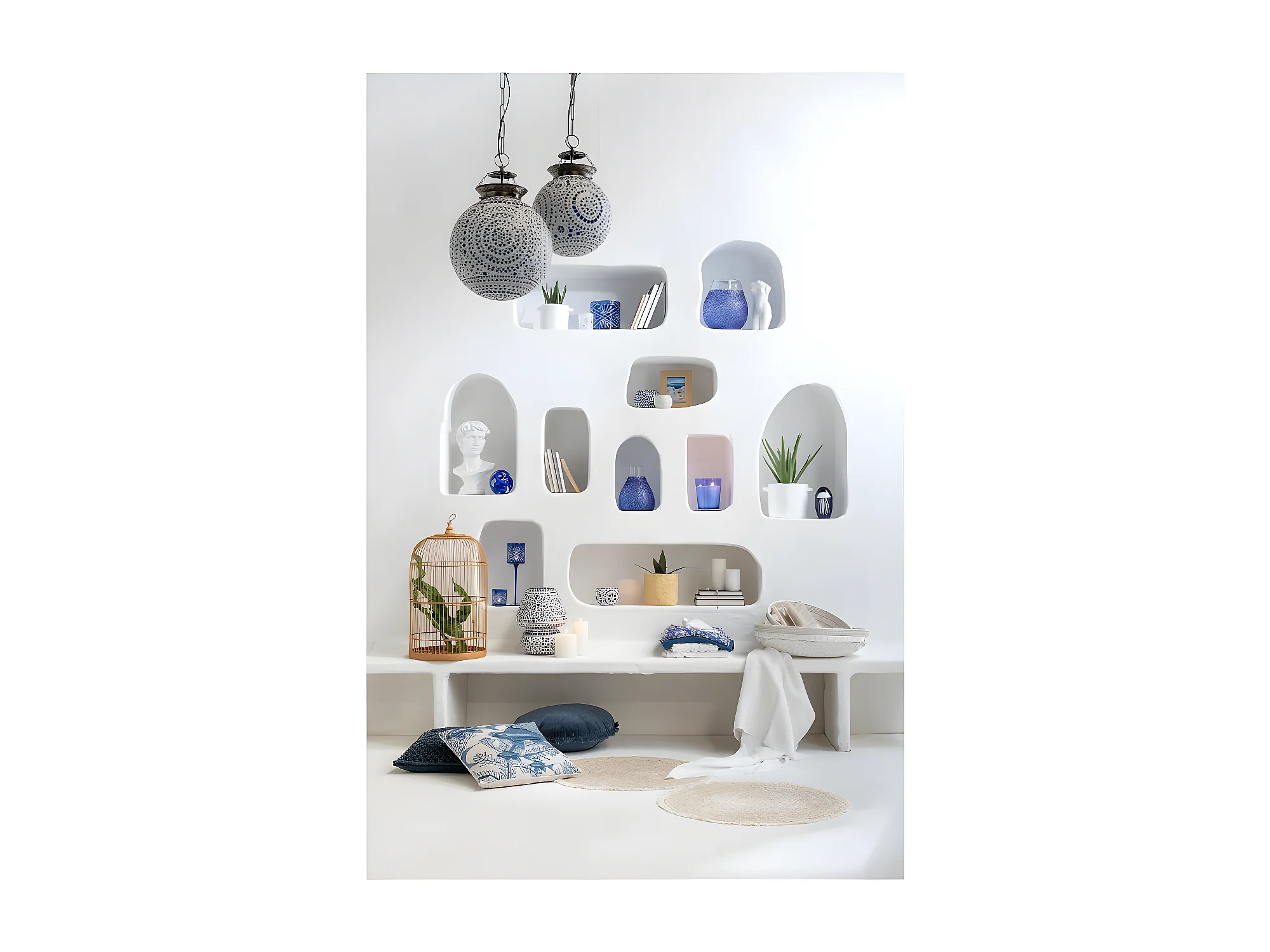 Cache-Pot Déco en Ciment "Damier" 33cm Blanc