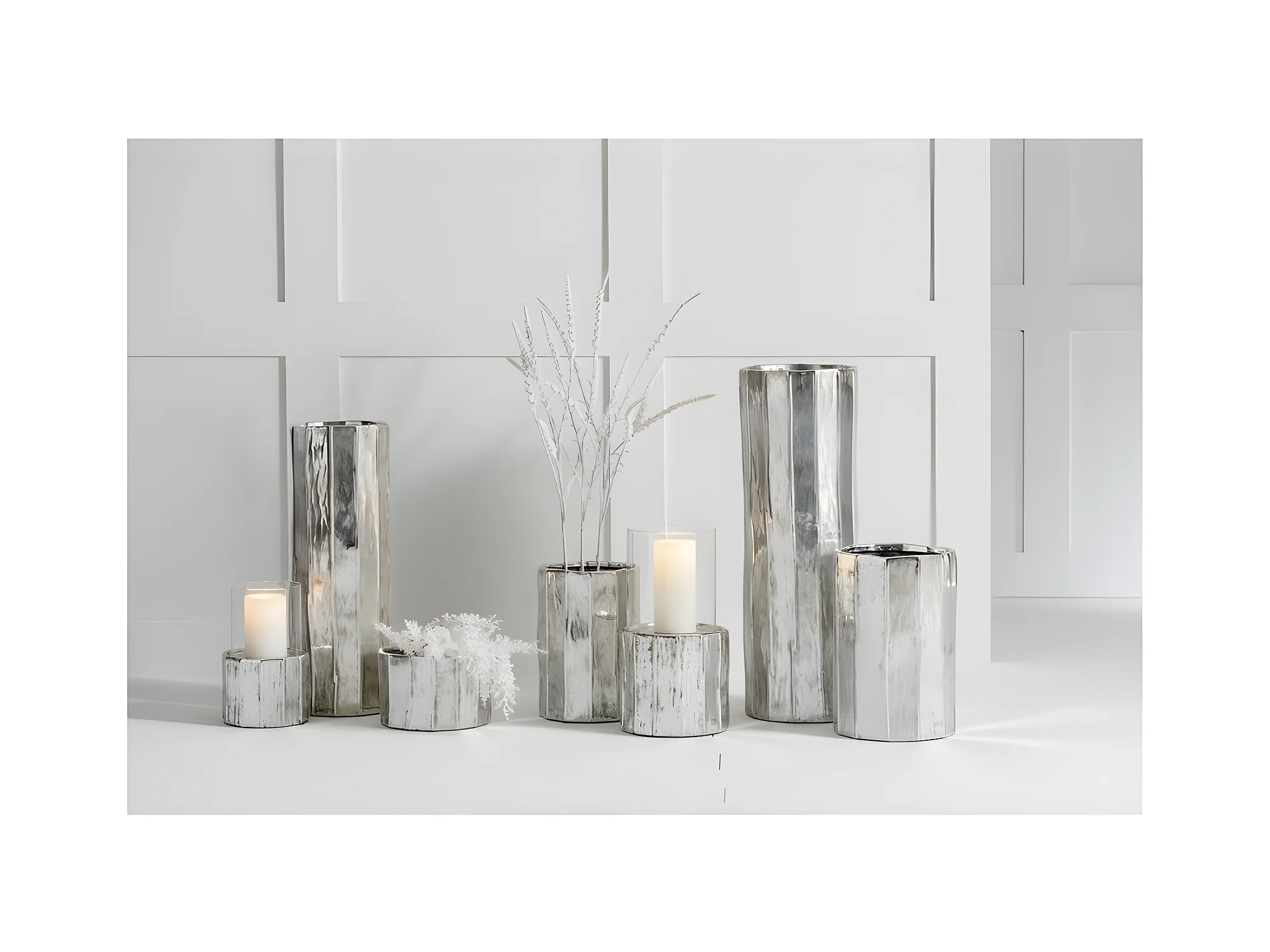 Cache-pot en céramique argent 16.5x16.5x25.5 cm
