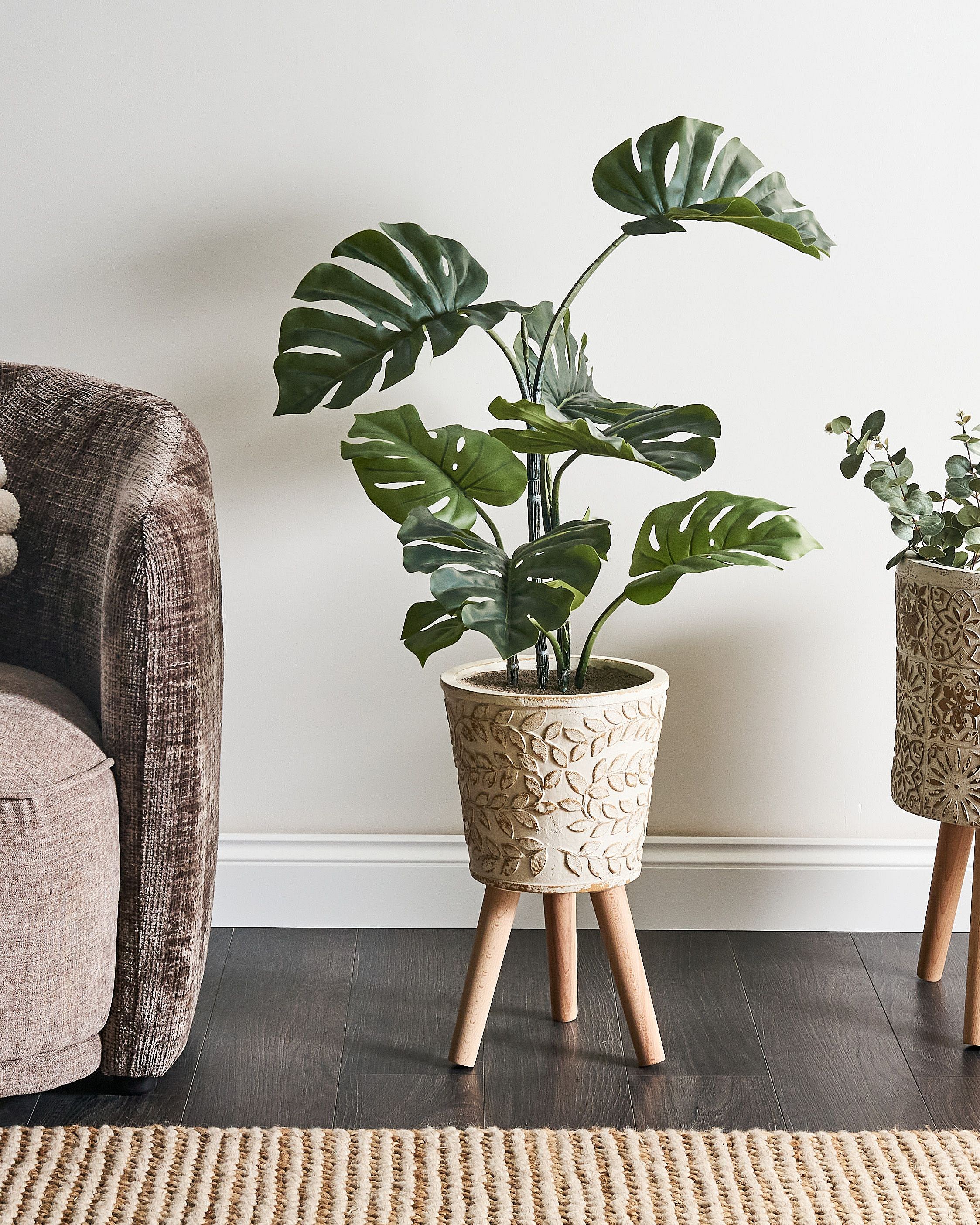 Cache-pot sur pied ALIARTOS 26 cm Blanc cassé