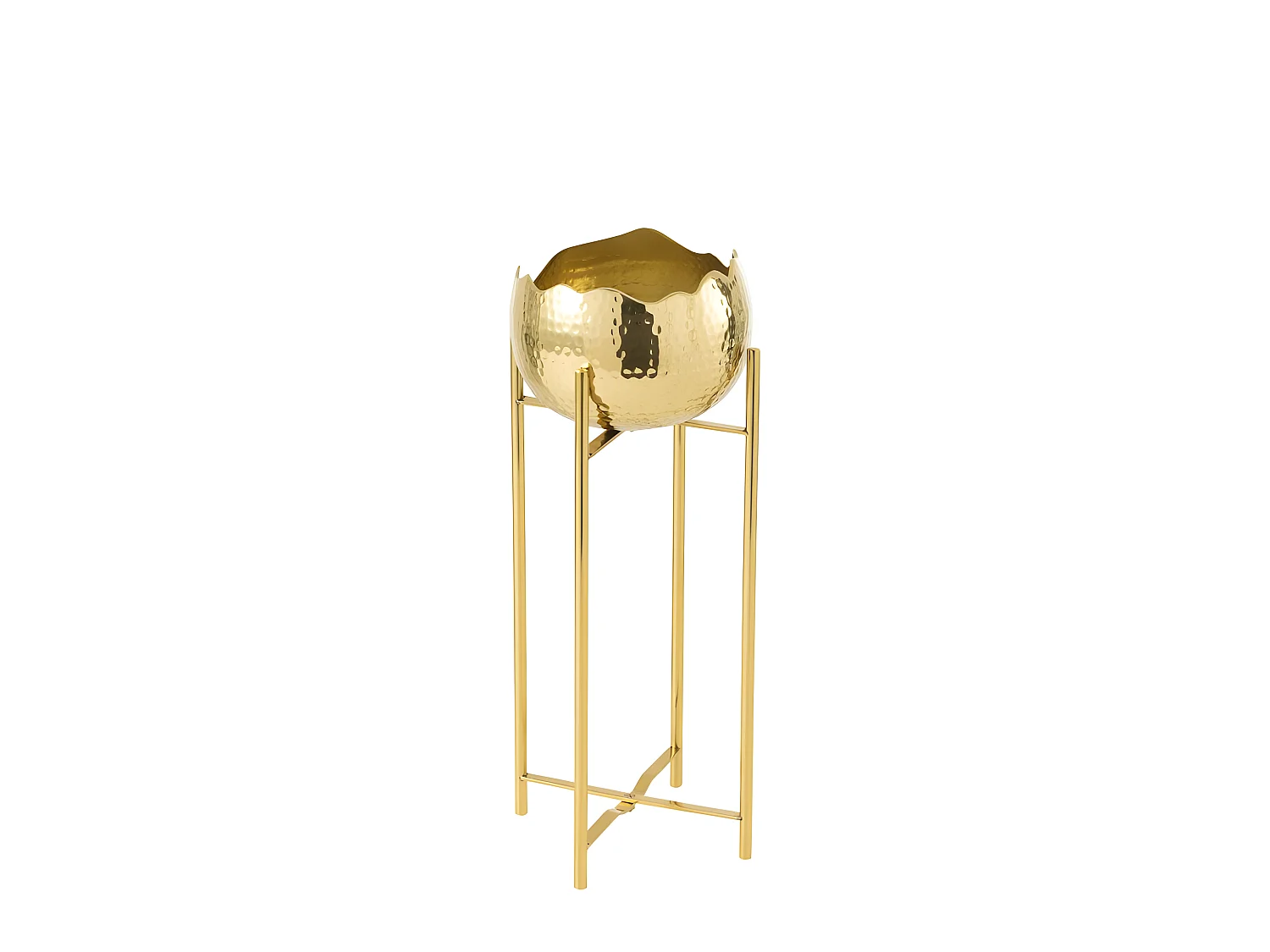 Cache-pot sur pied en métal doré 21x21x45 cm