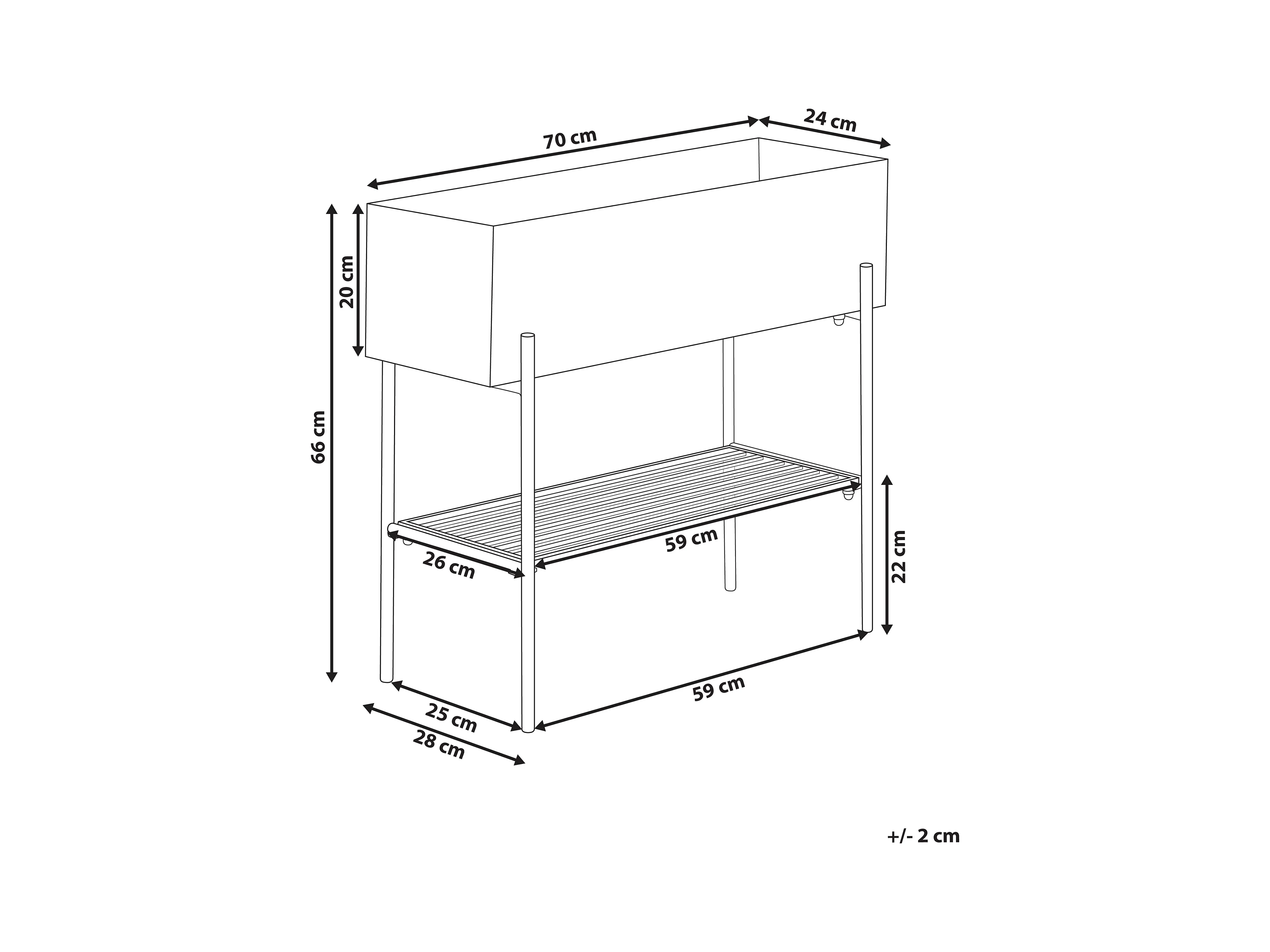 Étagère à plantes à 2 niveaux, métal, design moderne, noir (60x25x70 cm)