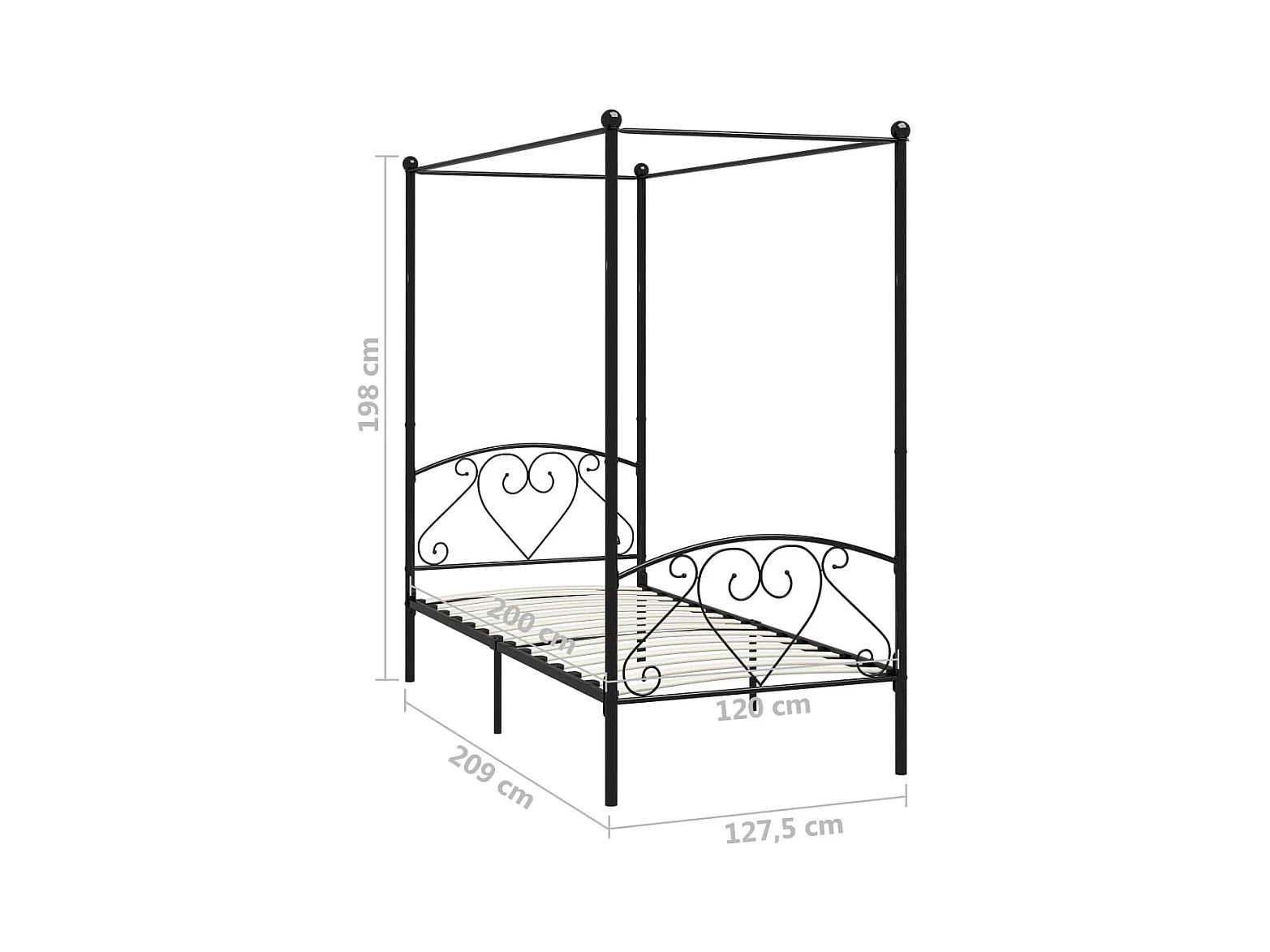 Cadre de lit à baldaquin Noir Métal 120 x 200 cm