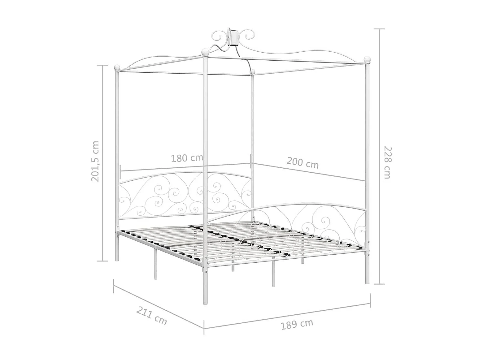 Cadre de lit à baldaquin sans matelas blanc métal 180x200 cm