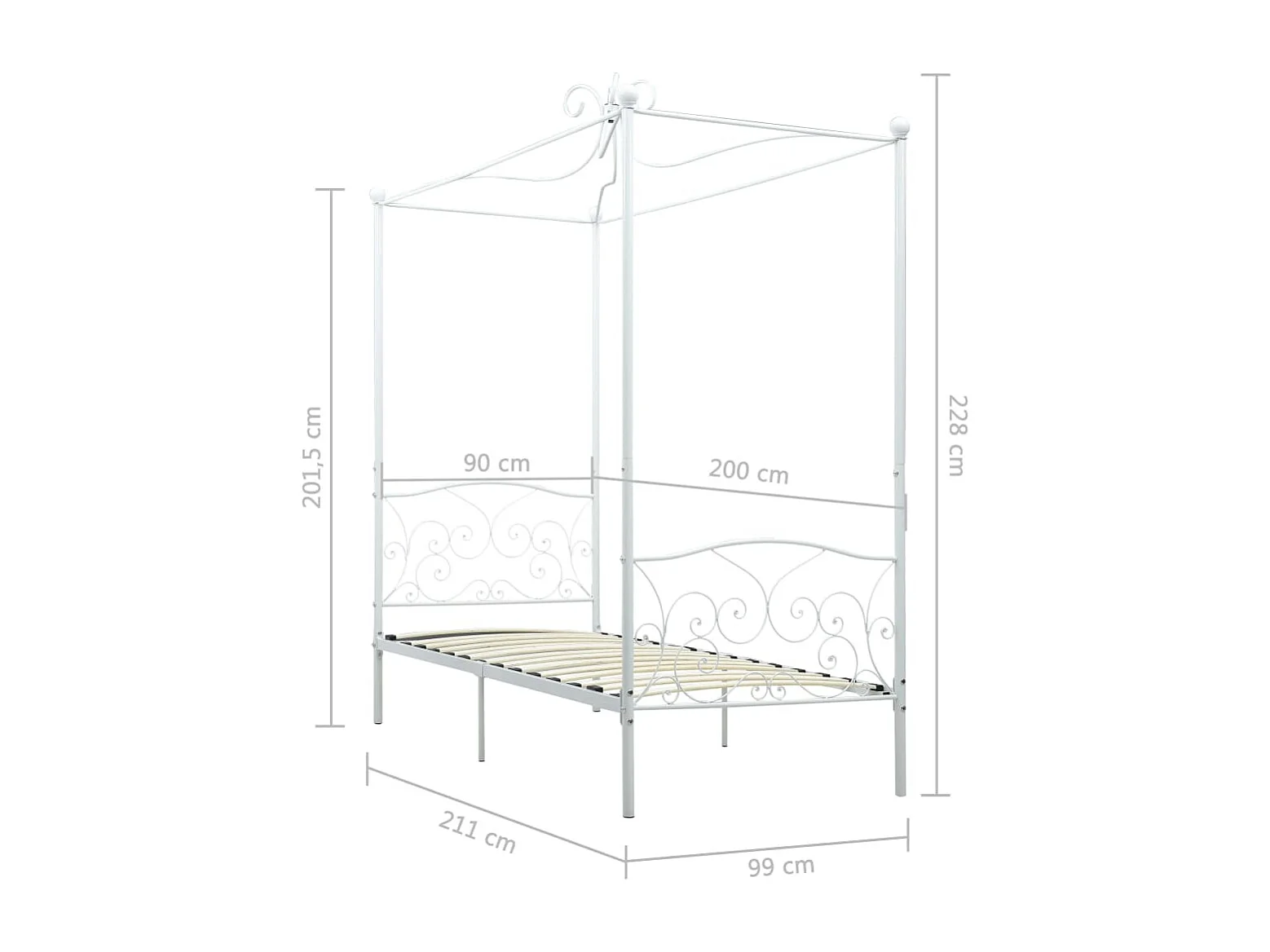 Cadre de lit à baldaquin sans matelas blanc métal 90x200 cm