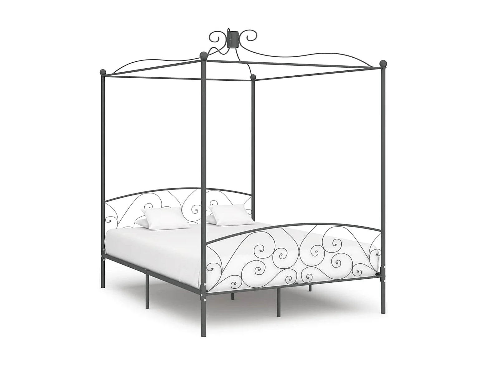 Cadre de lit à baldaquin sans matelas gris métal 180x200 cm
