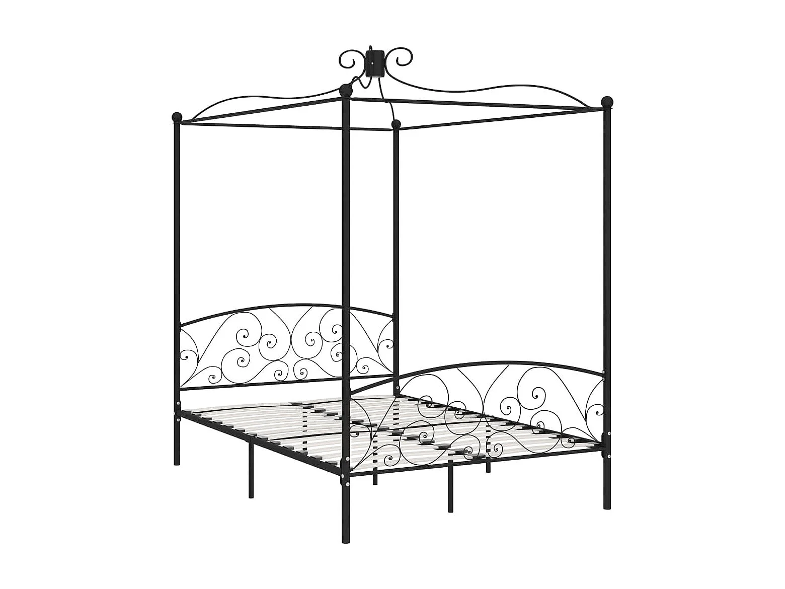 Cadre de lit à baldaquin sans matelas noir métal 120x200 cm