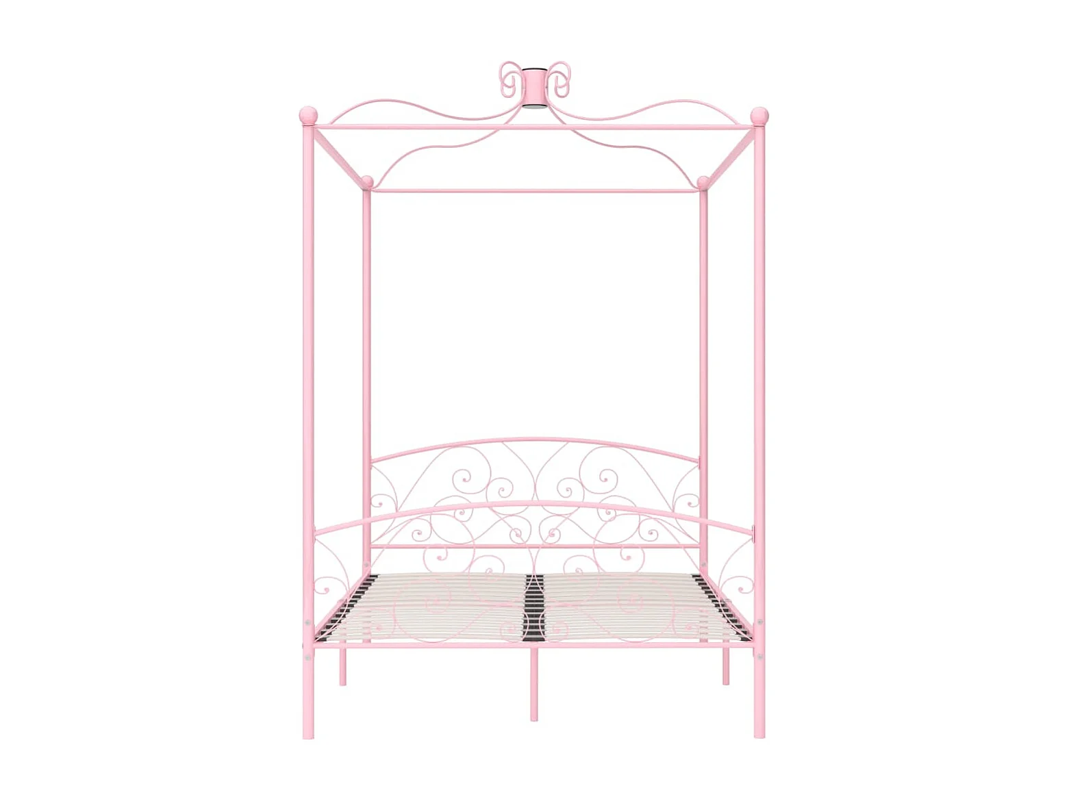 Cadre de lit à baldaquin sans matelas rose métal 140x200 cm