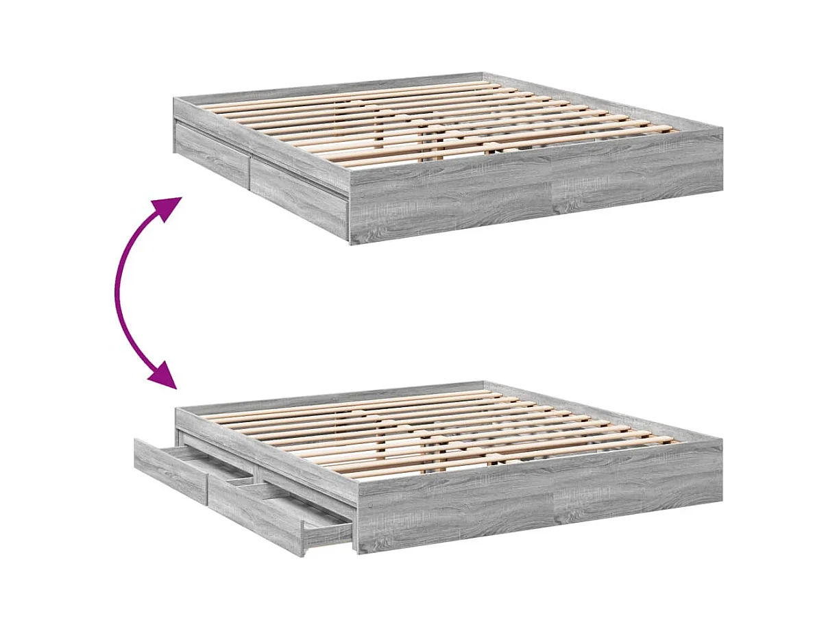 Cadre de lit avec tiroirs sans matelas sonoma gris 180x200 cm