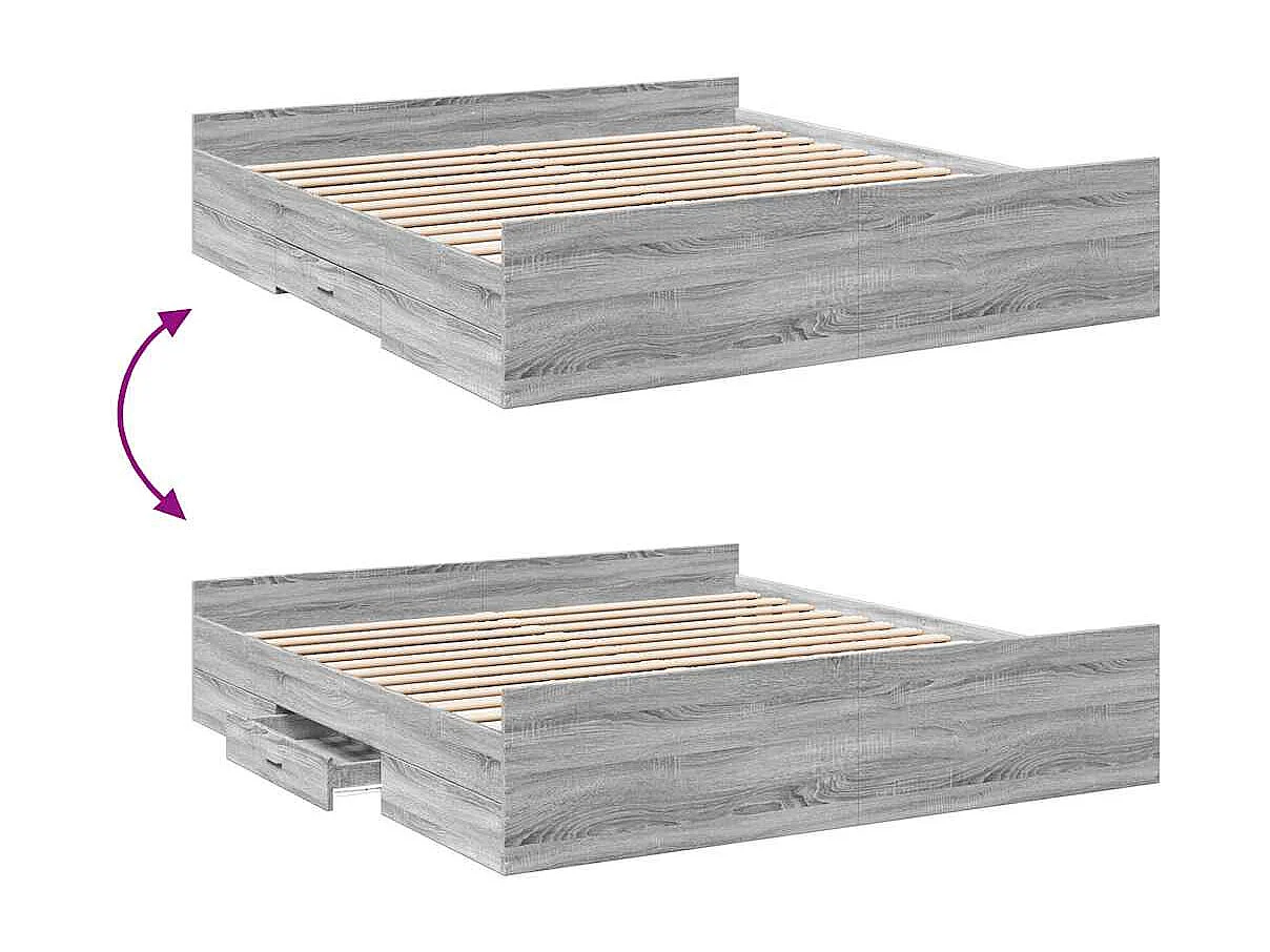 Cadre de lit avec tiroirs sans matelas sonoma gris 180x200 cm