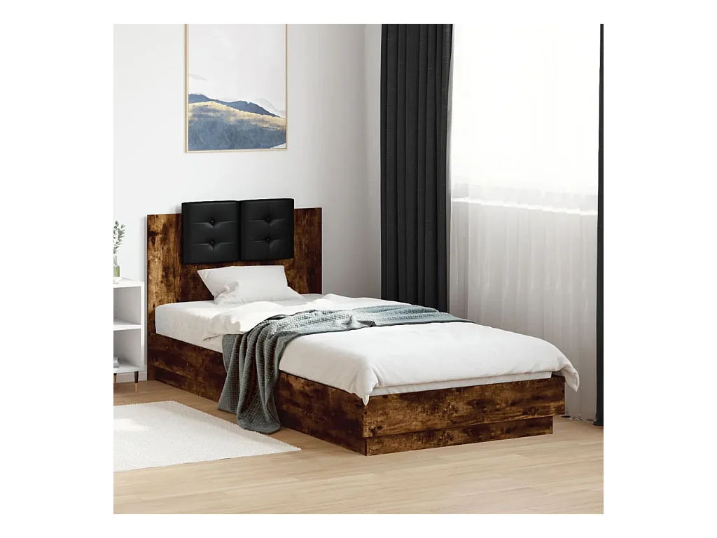 Cadre de lit avec rangement avec tête de lit Chêne Sonoma 90 x 200 cm