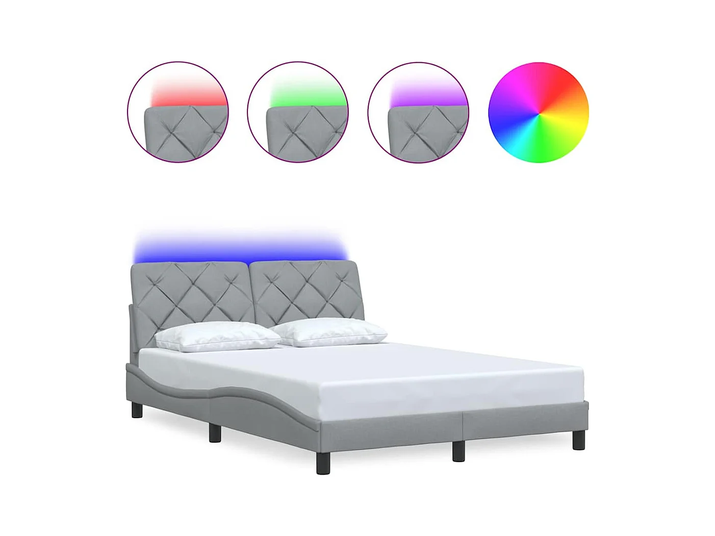 Cadre de lit avec LED sans matelas gris clair 120x200 cm tissu