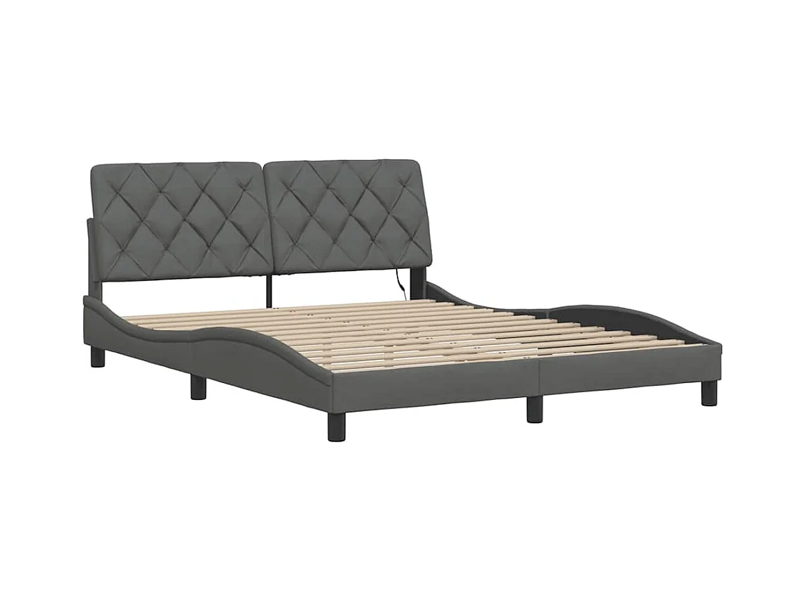 Cadre de lit avec LED sans matelas gris foncé 160x200 cm tissu