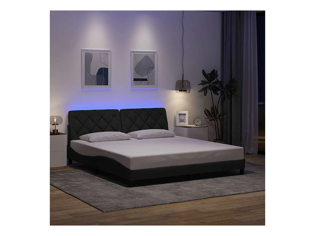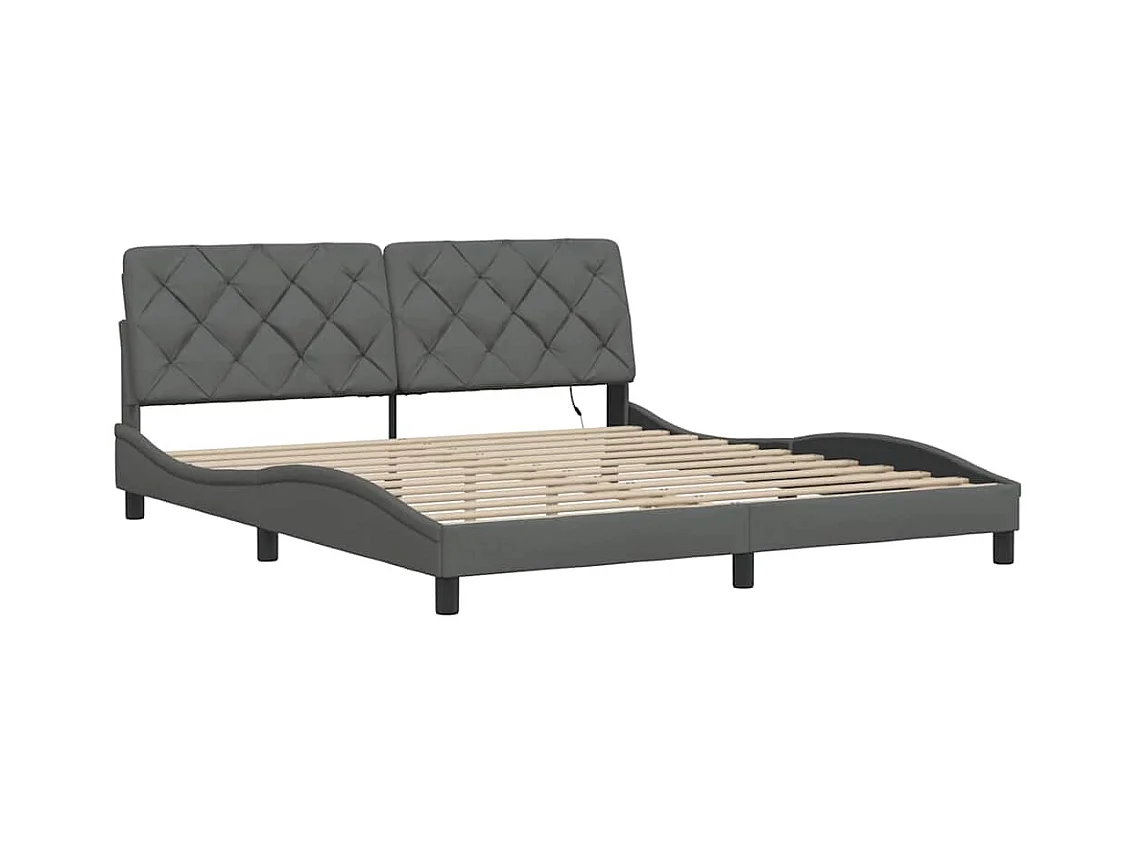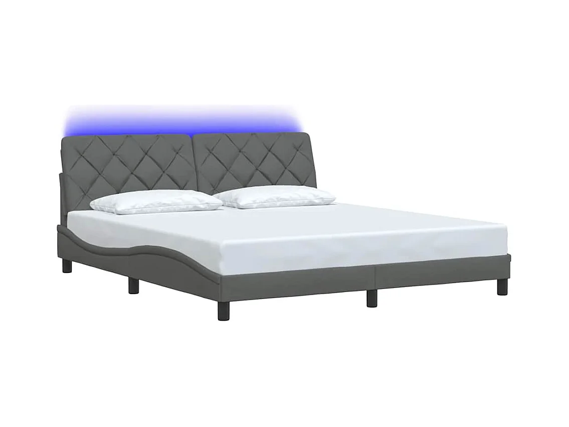 Cadre de lit avec LED sans matelas gris foncé 180x200 cm tissu