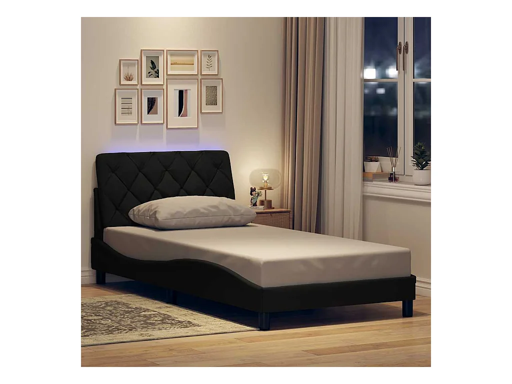 Cadre de lit avec LED sans matelas noir 100x200 cm tissu