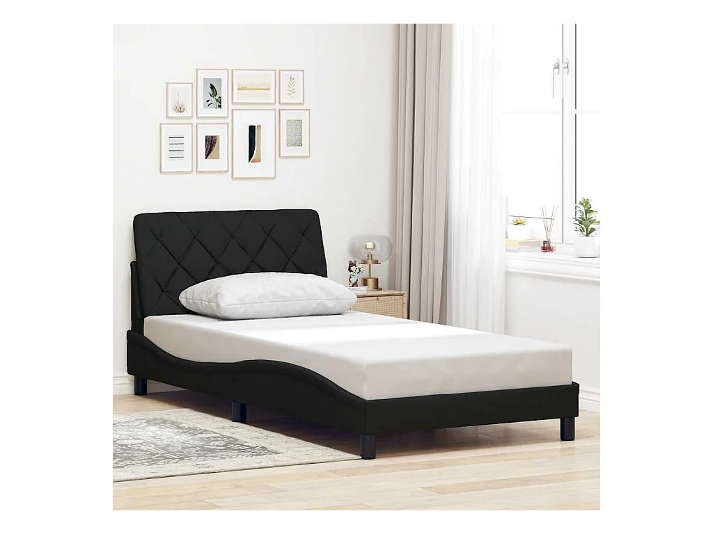 Cadre de lit avec tête de lit Noir 100 x 200 cm tissu