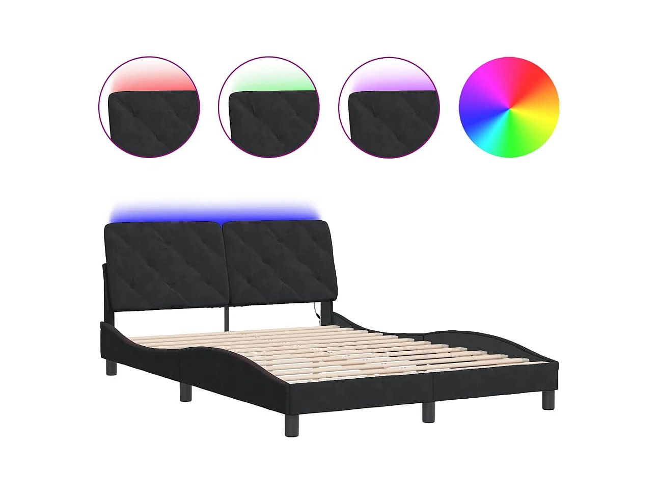 Cadre de lit avec LED sans matelas noir 120x200 cm velours