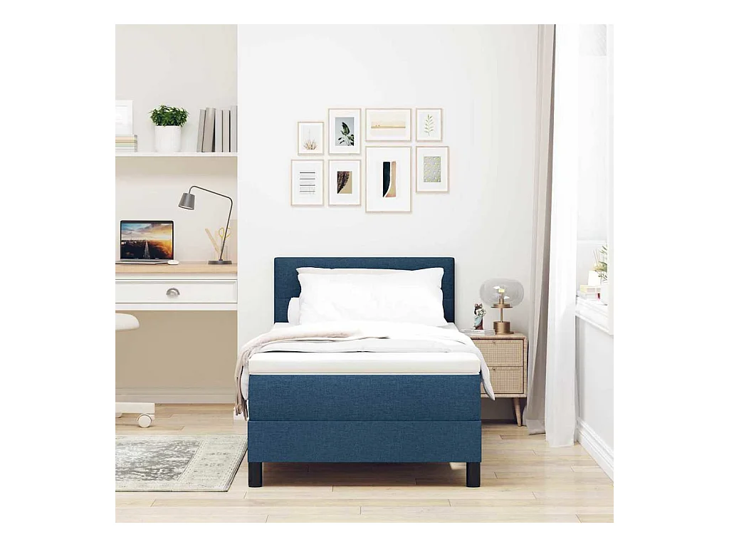 Cadre de lit avec matelas Bleu 100 x 200 cm tissu