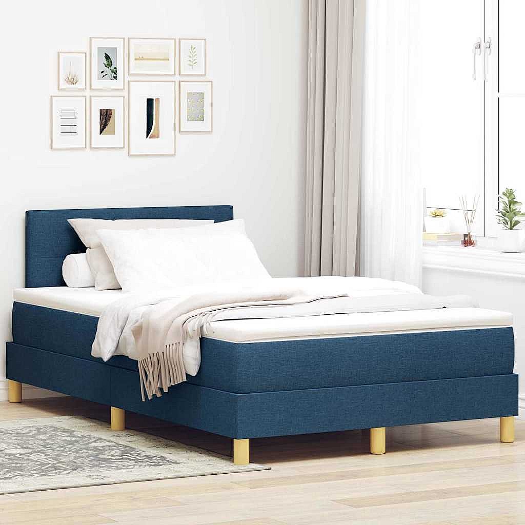Cadre de lit avec matelas Bleu 120 x 200 cm tissu