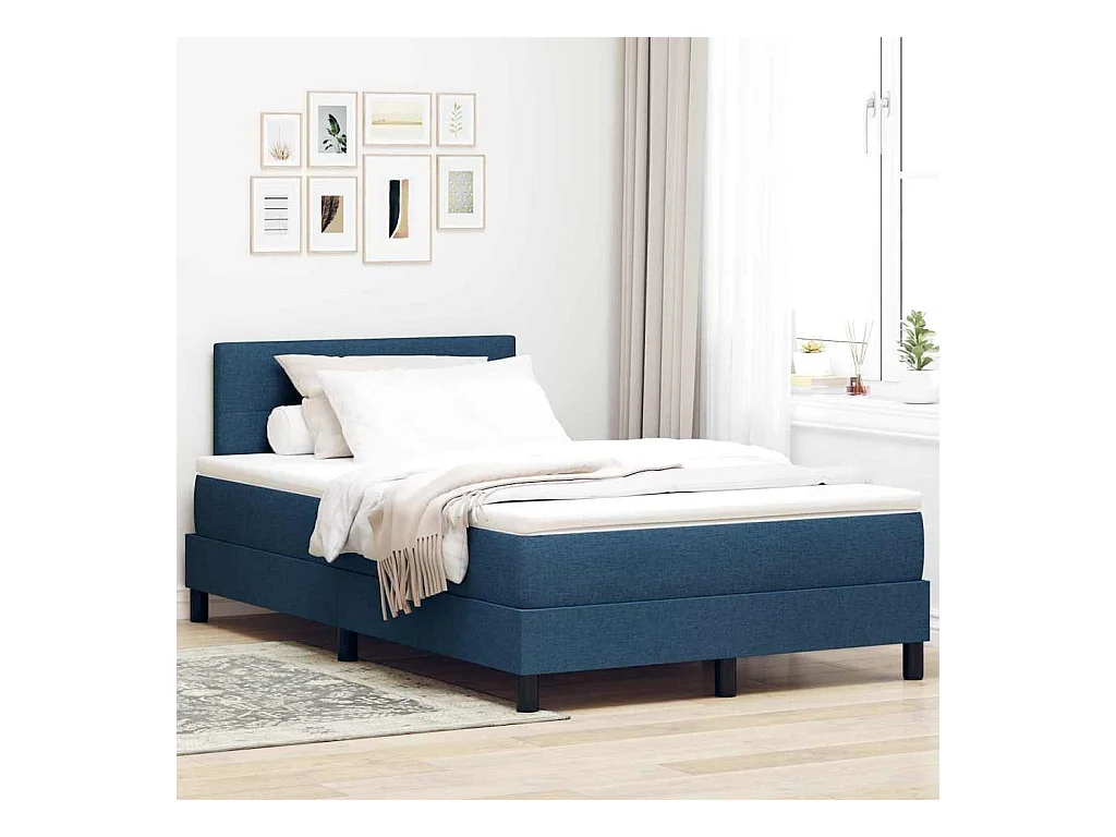 Cadre de lit avec matelas Bleu 120 x 200 cm tissu