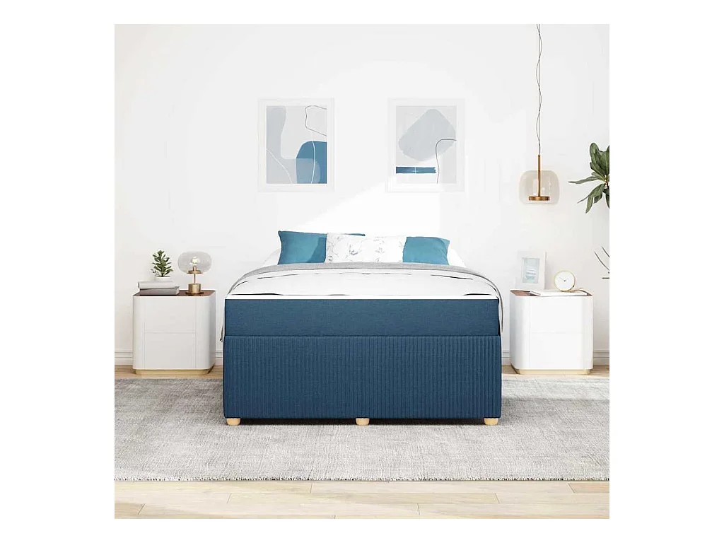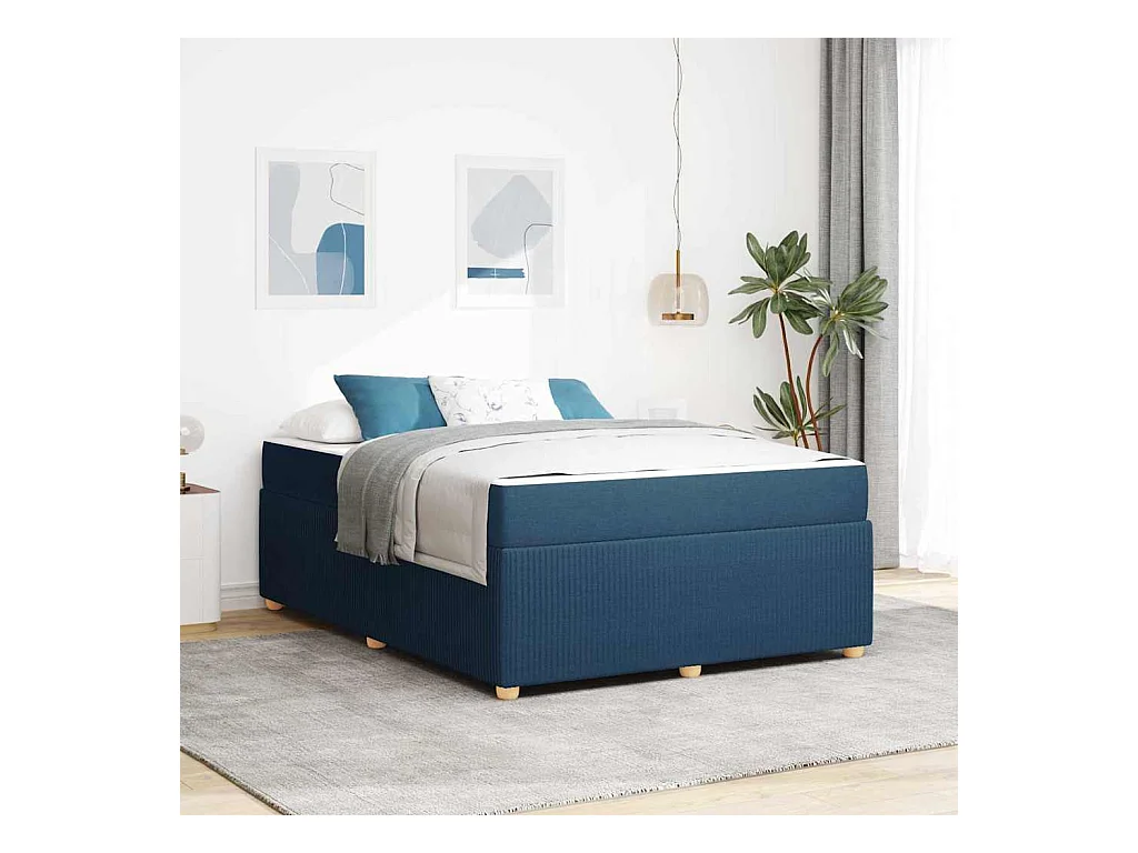 Cadre de lit avec matelas Bleu 160 x 200 cm tissu