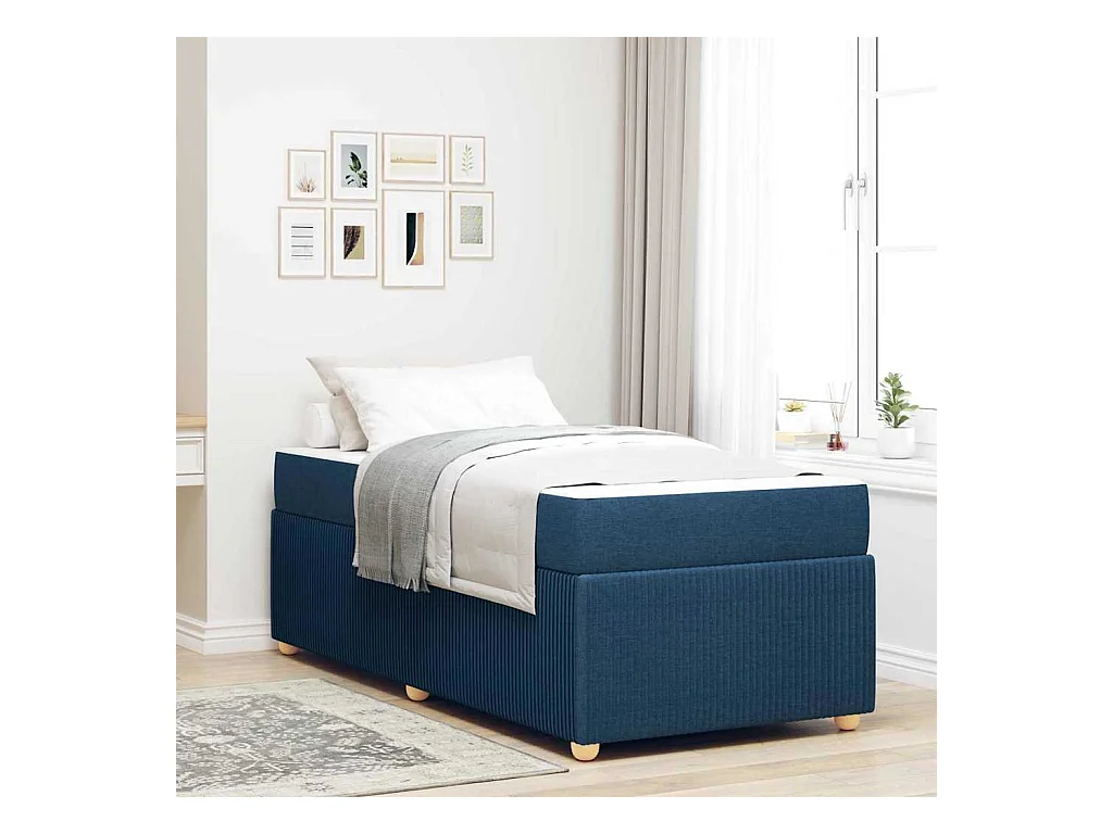 Cadre de lit avec matelas avec matelas Bleu 90 x 200 cm tissu