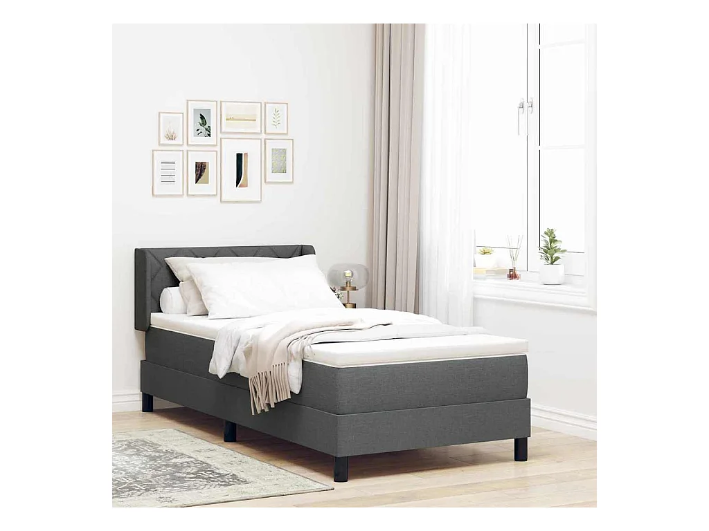 Cadre de lit avec matelas Gris foncé 90 x 190 cm tissu