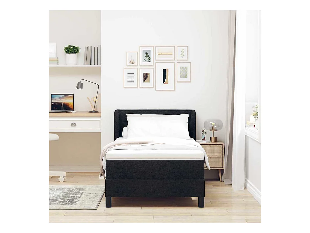Cadre de lit avec matelas avec matelas Noir 80 x 200 cm tissu