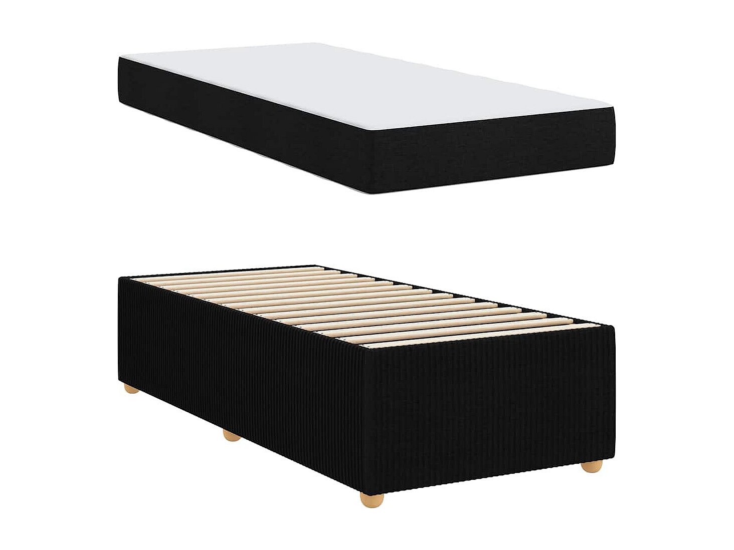 Cadre de lit avec matelas avec matelas Noir 90 x 190 cm tissu