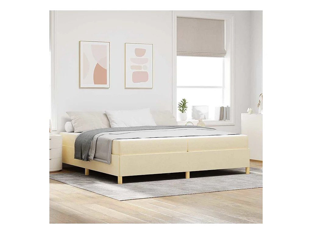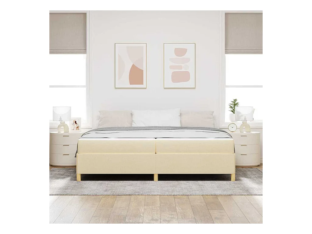 Cadre de lit avec matelas Blanc et crème 200 x 200 cm tissu