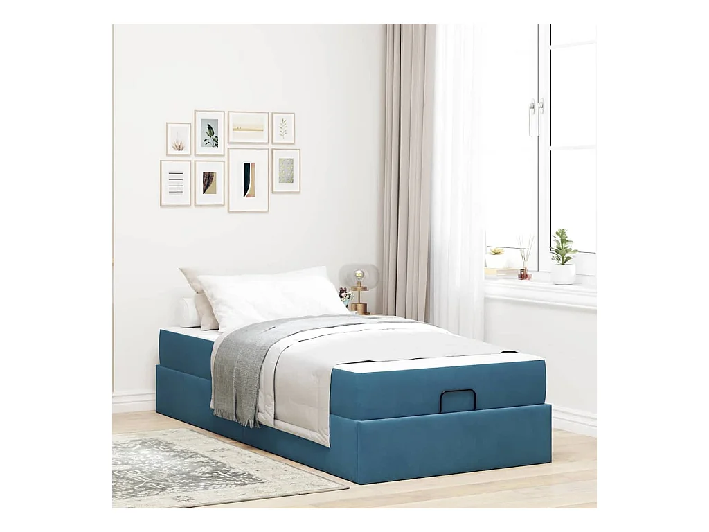Cadre de lit avec matelas Bleu 100 x 200 cm Velours