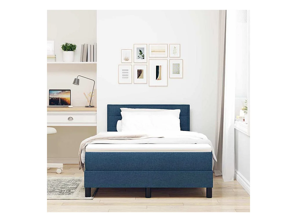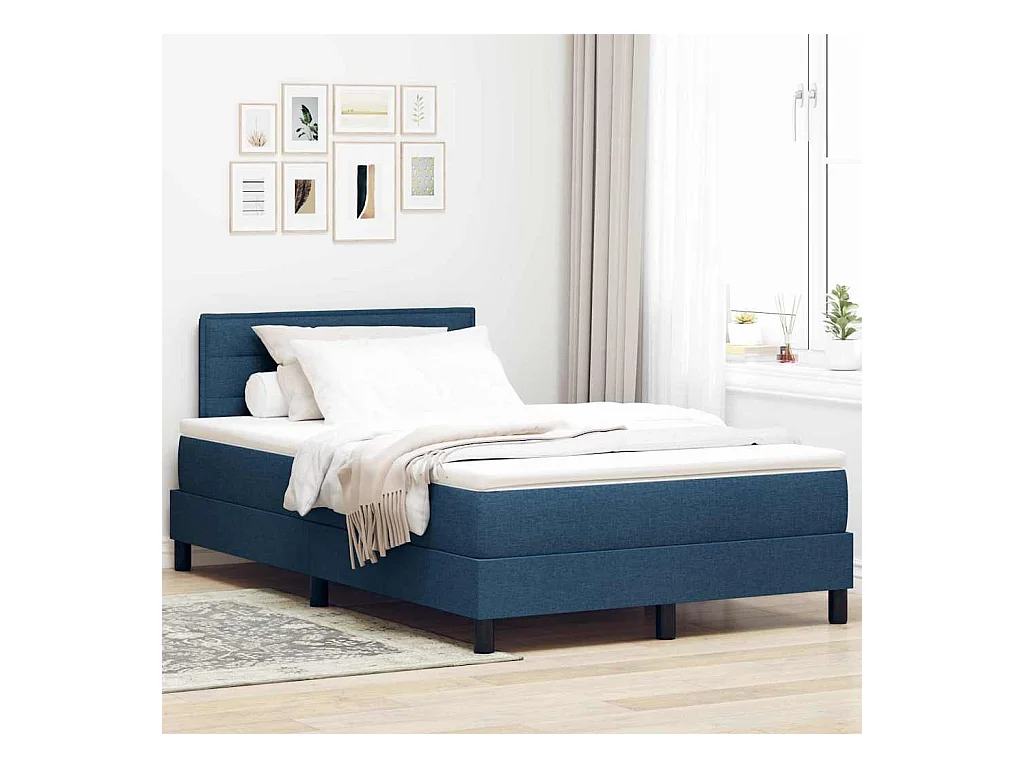 Cadre de lit avec matelas Bleu 120 x 190 cm tissu