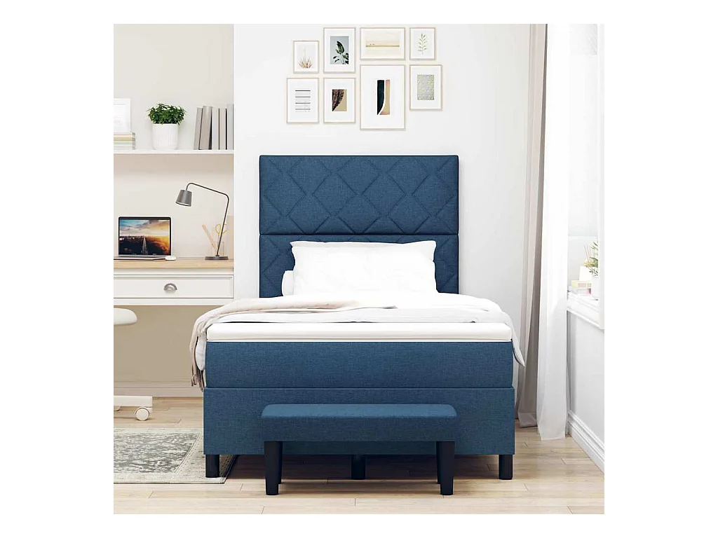 Cadre de lit avec matelas Bleu 120 x 200 cm tissu