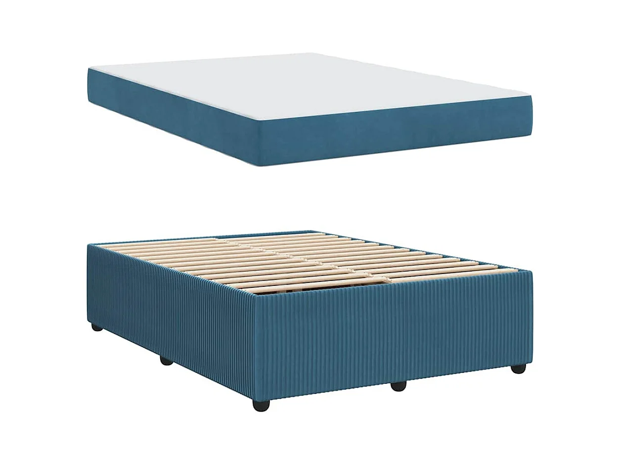 Sommier à lattes de lit et matelas bleu 140x200 cm velours