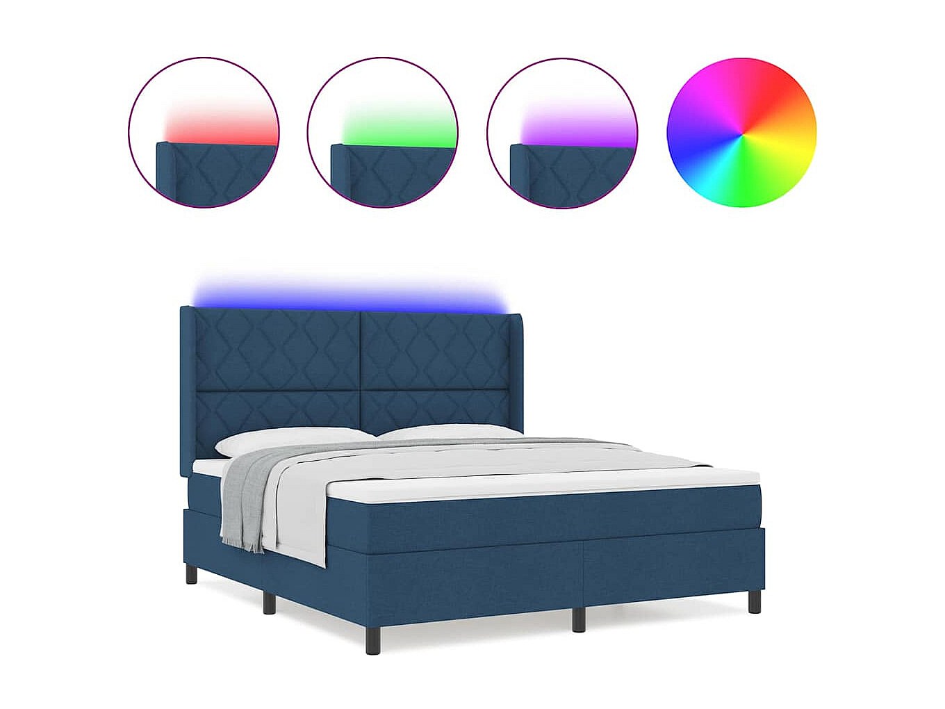 Cadre de lit avec matelas Bleu 180 x 200 cm tissu