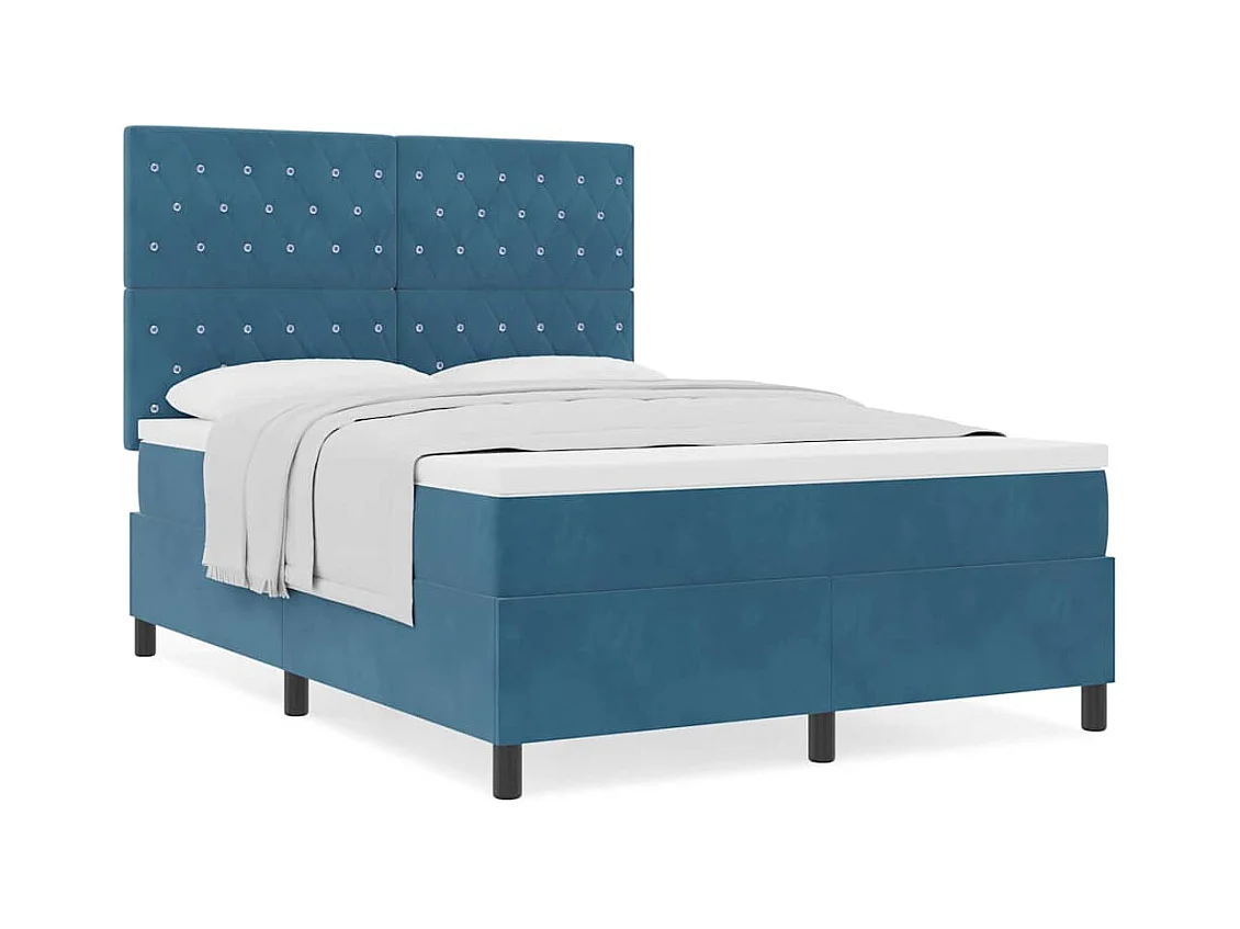 Cadre de lit avec matelas Bleu foncé 140 x 190 cm Velours
