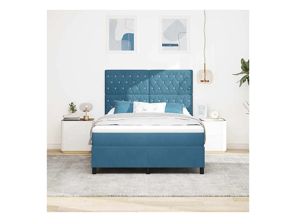 Sommier à lattes de lit et matelas bleu 140x190 cm velours