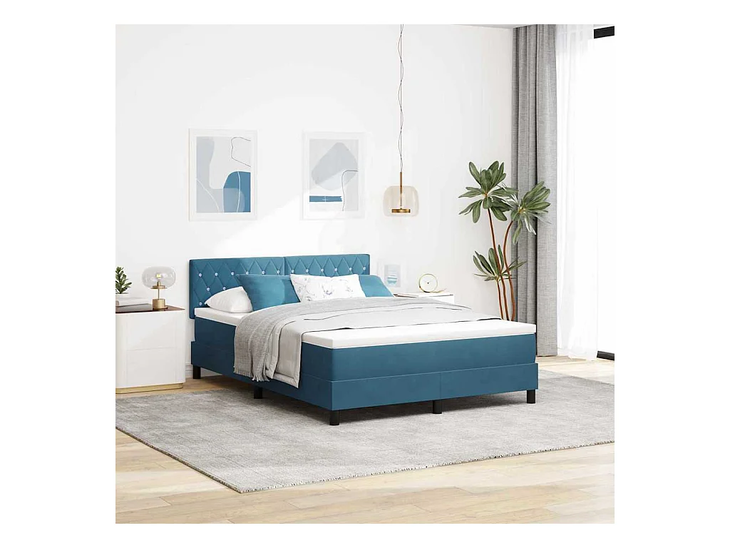 Sommier à lattes de lit et matelas bleu 140x200 cm velours