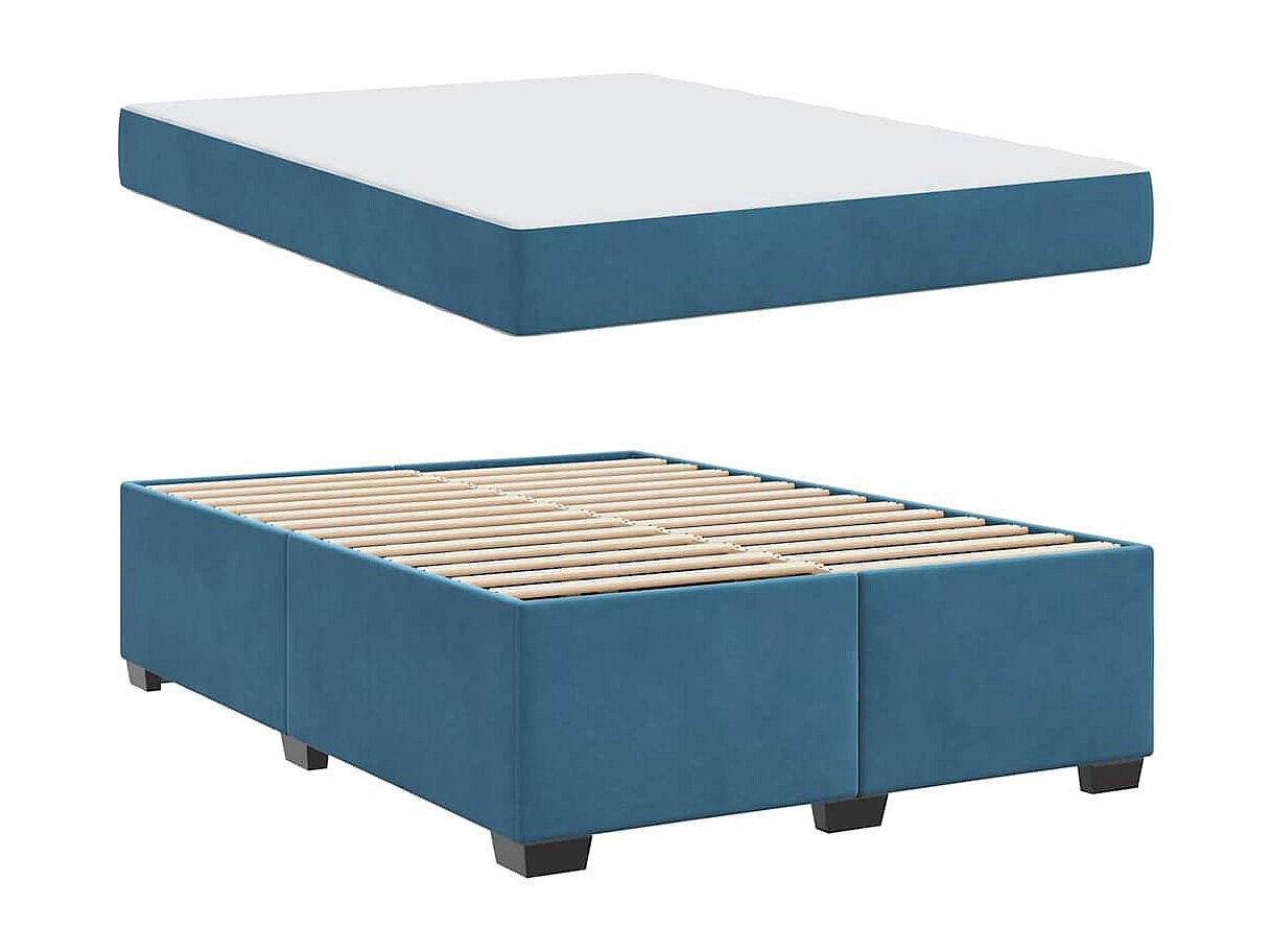 Cadre de lit avec matelas Bleu foncé 160 x 200 cm Velours