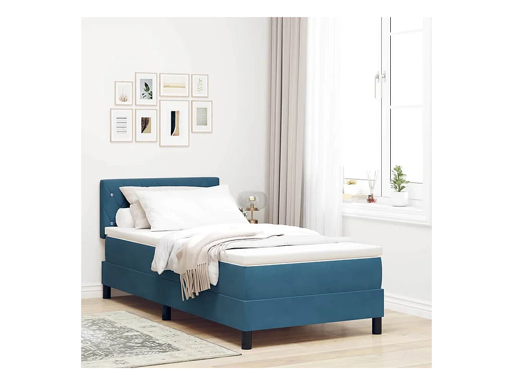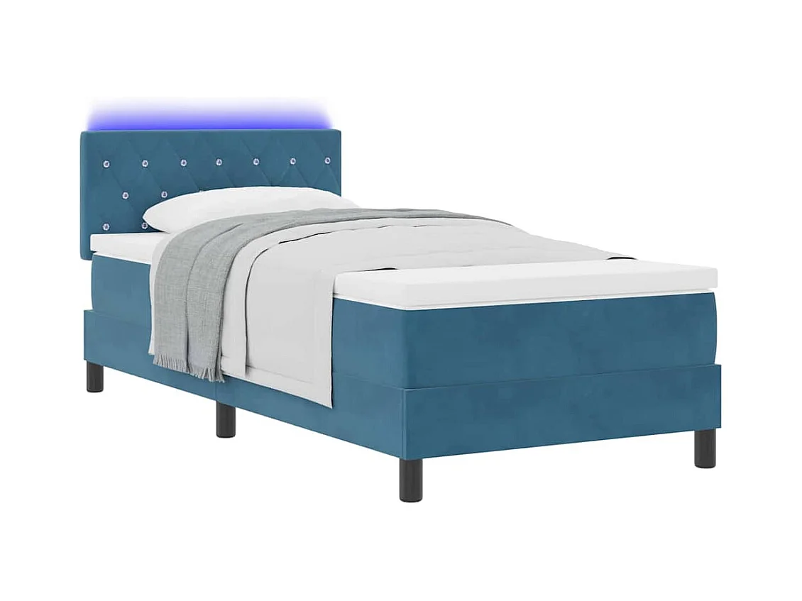 Cadre de lit avec matelas Bleu foncé 90 x 190 cm Velours