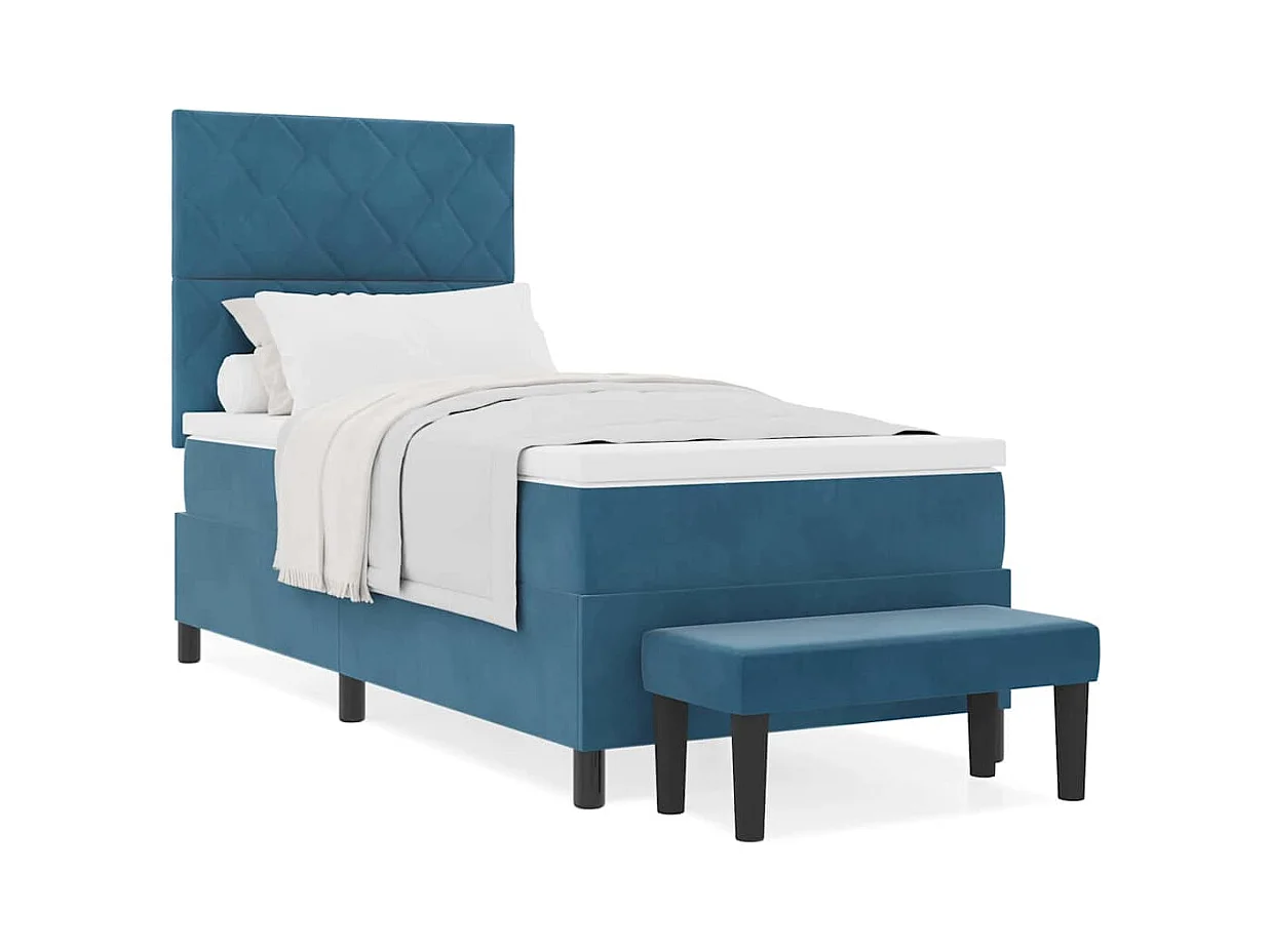 Cadre de lit avec matelas Bleu foncé 90 x 200 cm Velours