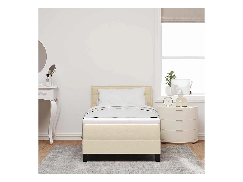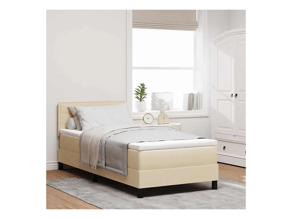 Cadre de lit avec matelas Crème 100 x 200 cm tissu