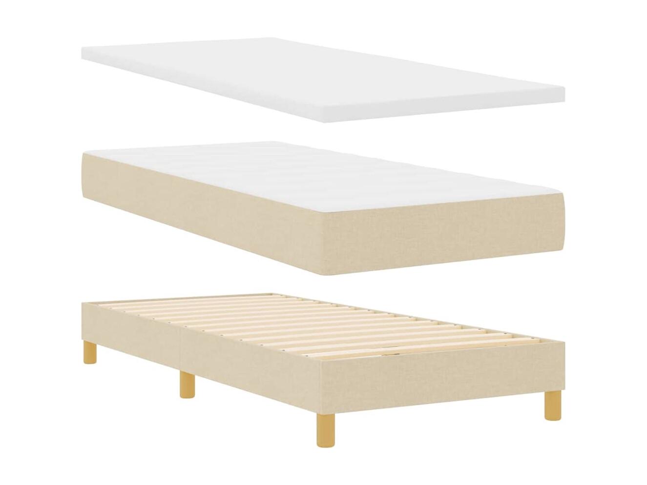 Cadre de lit avec matelas Crème 100 x 200 cm tissu