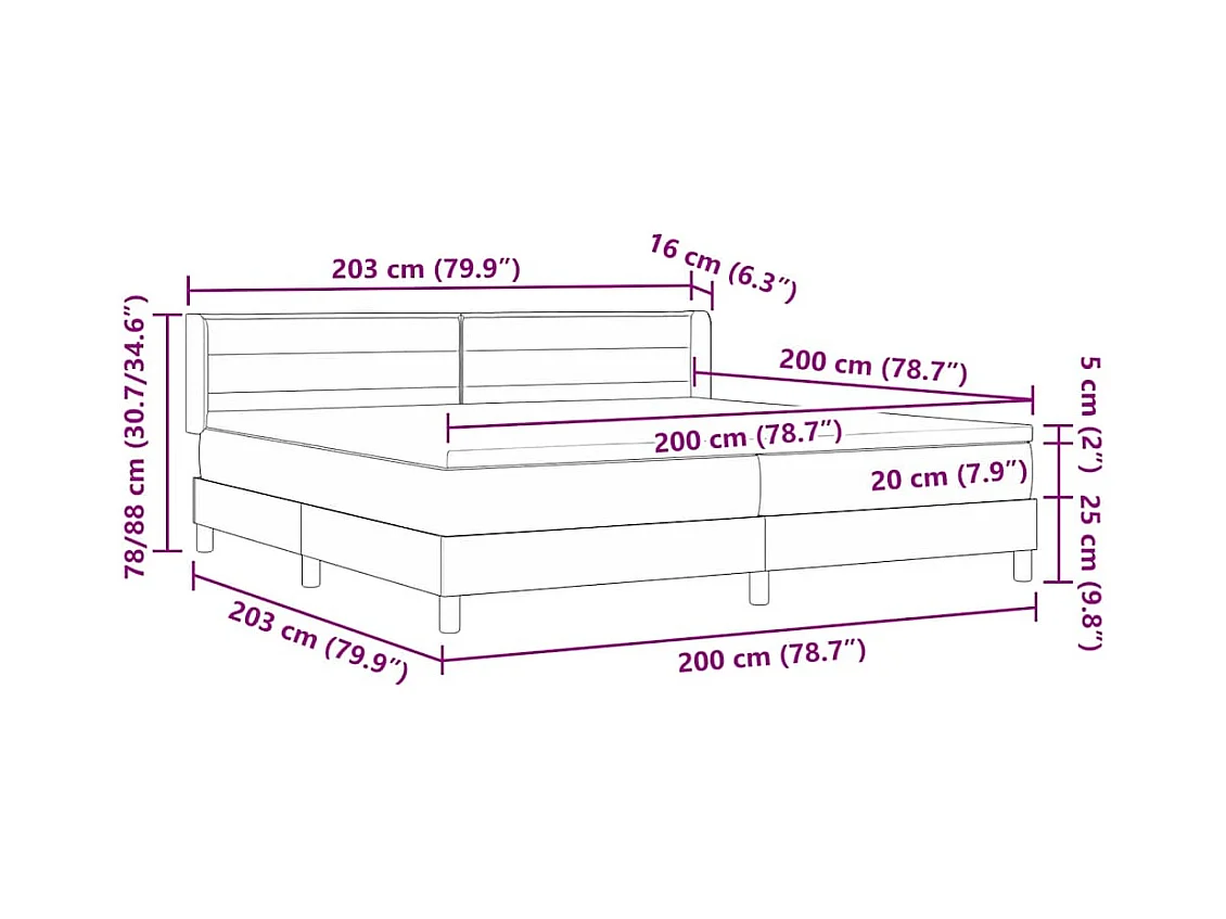 Cadre de lit avec matelas Crème 200 x 200 cm tissu
