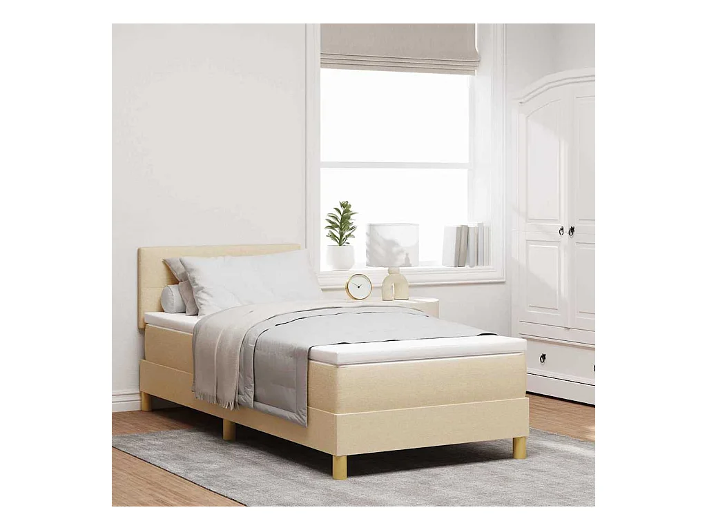Cadre de lit avec matelas avec matelas Crème 90 x 190 cm tissu